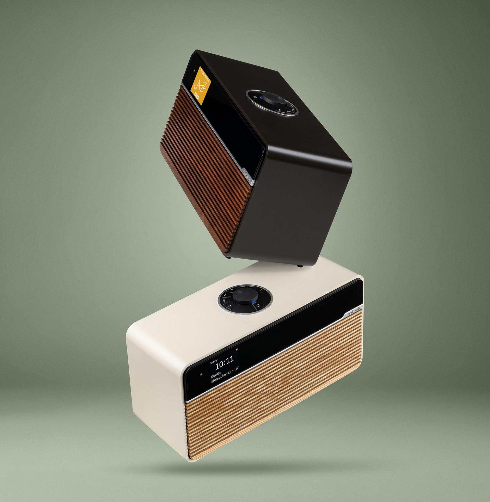 견고한 유닛은 음향적으로 튜닝된 댐핑 폴리머 캐비닛을 통해 아름다움은 물론 음질까지 고려했습니다. R2는 애쉬 그릴에 라이트 크림 또는 월넛 그릴에 에스프레소 두 가지 마감으로 제공됩니다. 캐비닛의 둥근 모서리, 수공예 슬레이트 우드 그릴, 전면부 디스플레이는 모두 매우 높은 퀄리티로 제작되었습니다.